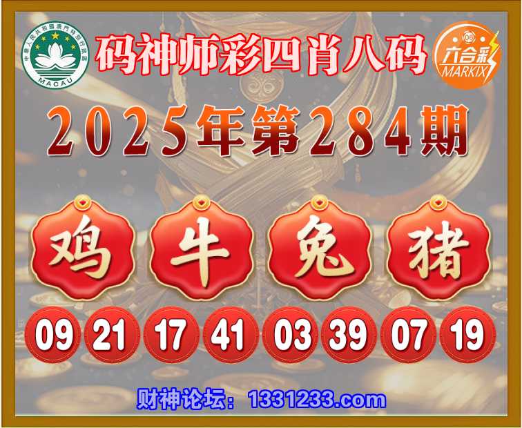 284期:〖码神师彩〗 🍏四肖八码🍏【鸡牛兔猪】开:牛41准