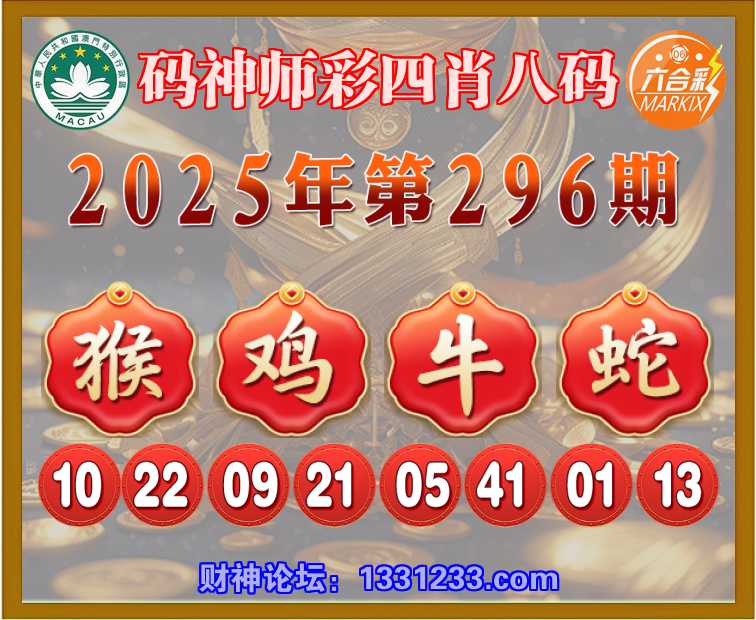 296期:〖码神师彩〗 🍏四肖八码🍏【猴鸡牛蛇】开:猴22准