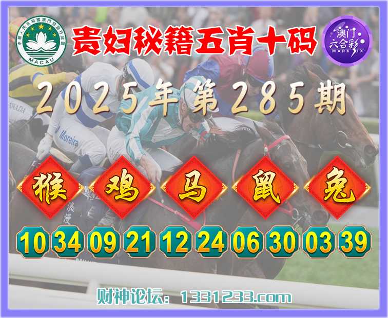 285期:【贵妇秘籍】 🏆五肖十码🏆【猴鸡马鼠兔】开:马24准
