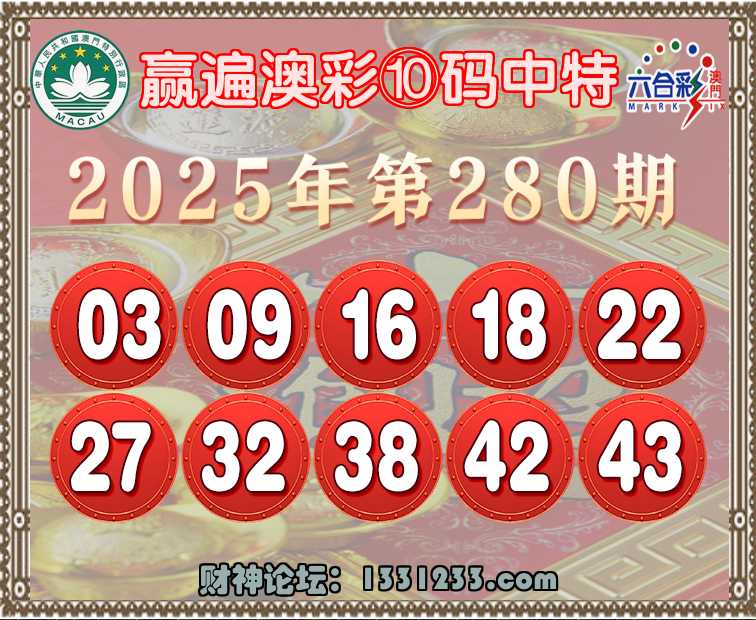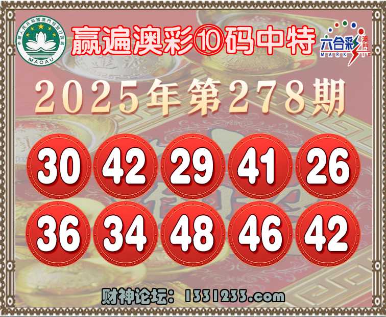 280期:『赢遍澳彩』 🧣⑩码中特🧣开:42准