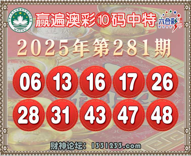 281期:『赢遍澳彩』 🧣⑩码中特🧣开:47准