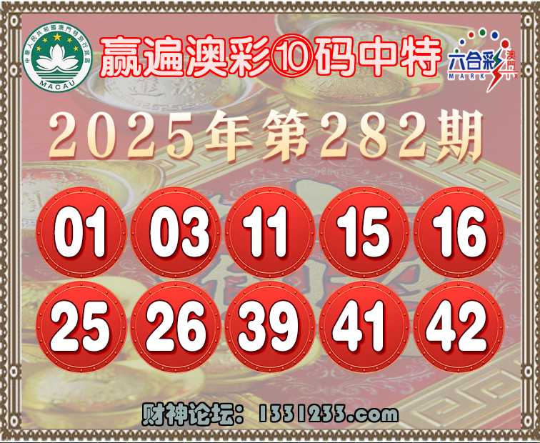 282期:『赢遍澳彩』 🧣⑩码中特🧣开:41准