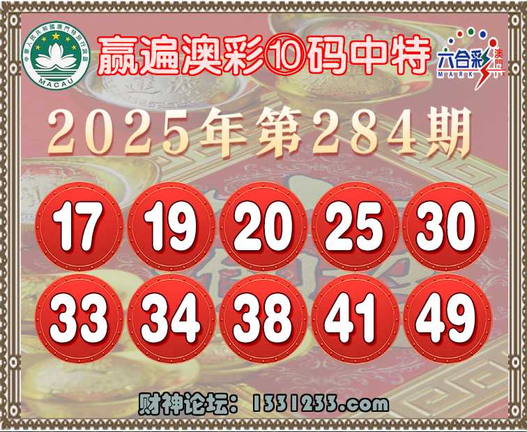 284期:『赢遍澳彩』 🧣⑩码中特🧣开:41准