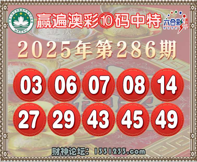 286期:『赢遍澳彩』 🧣⑩码中特🧣开:03准