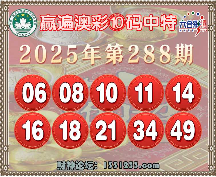 288期:『赢遍澳彩』 🧣⑩码中特🧣开:14准
