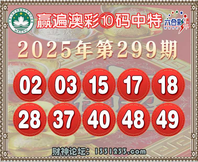 299期:『赢遍澳彩』 🧣⑩码中特🧣开:49准