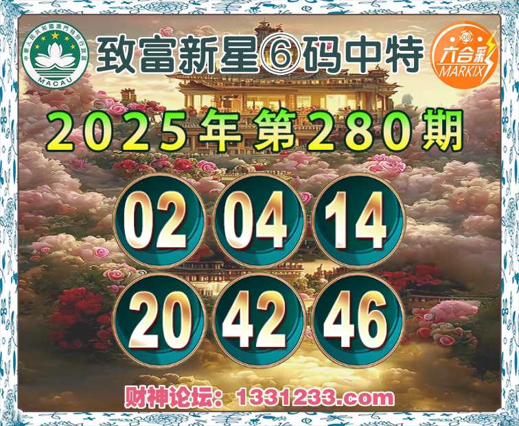 280期:【致富新星】 ⚽⑥码中特⚽【02.04.14.20.42.46】开:42准