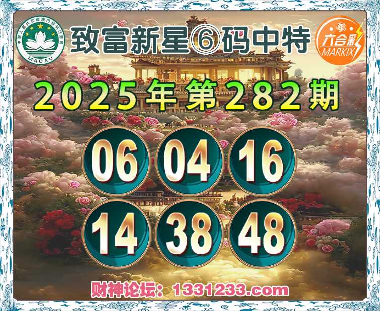 282期:【致富新星】 ⚽⑥码中特⚽【06.04.16.14.38.48】开:41错