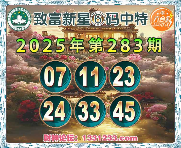 283期:【致富新星】 ⚽⑥码中特⚽【07.11.23.24.33.45】开:45准