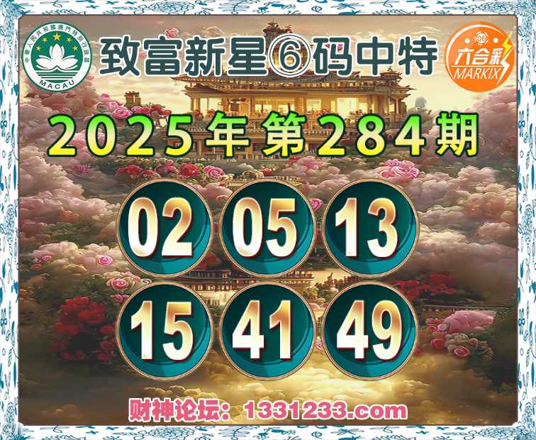 284期:【致富新星】 ⚽⑥码中特⚽【02.05.13.15.41.49】开:41准