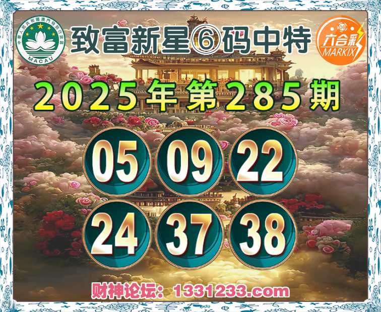 285期:【致富新星】 ⚽⑥码中特⚽【05.09.22.24.37.38】开:24准