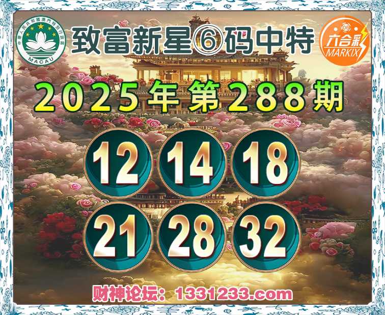 288期:【致富新星】 ⚽⑥码中特⚽【12.14.18.21.28.32】开:14准