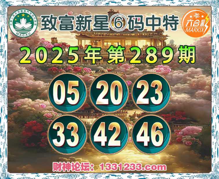 289期:【致富新星】 ⚽⑥码中特⚽【05.20.23.33.42.46】开:42准