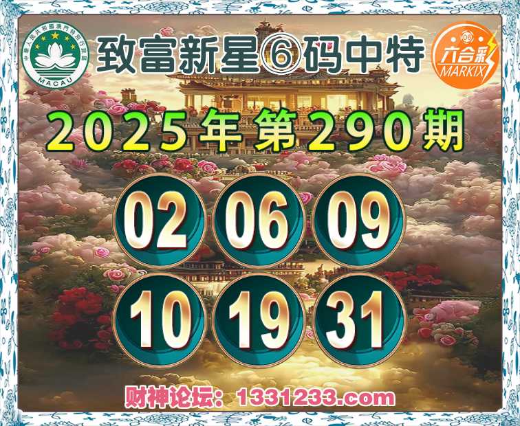 290期:【致富新星】 ⚽⑥码中特⚽【02.06.09.10.19.31】开:19准