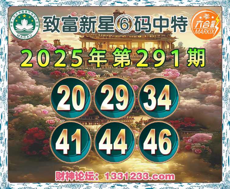 291期:【致富新星】 ⚽⑥码中特⚽【20.29.34.41.44.46】开:44准