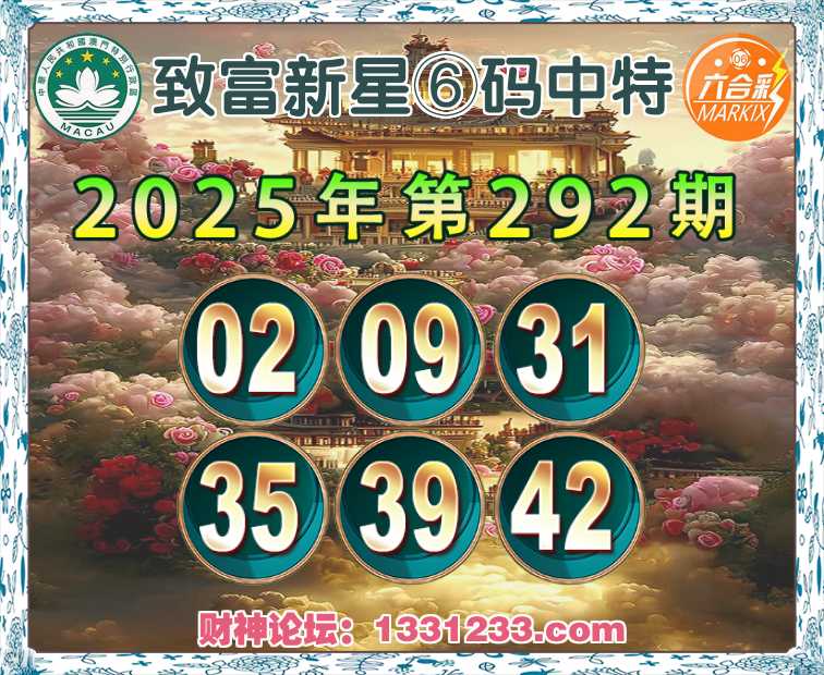 292期:【致富新星】 ⚽⑥码中特⚽【02.09.31.35.39.42】开:02准