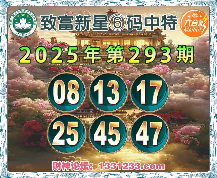 293期:【致富新星】 ⚽⑥码中特⚽【08.13.17.25.45.47】开:47准