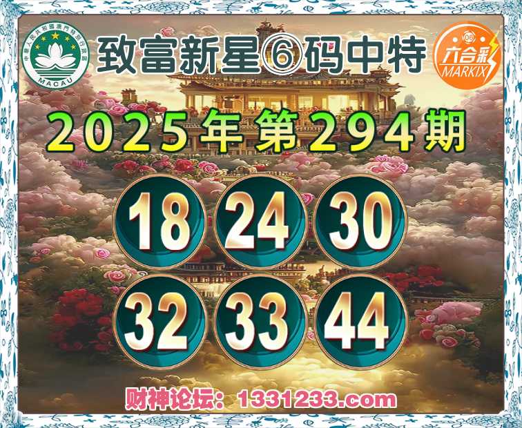 294期:【致富新星】 ⚽⑥码中特⚽【18.24.30.32.33.44】开:18准