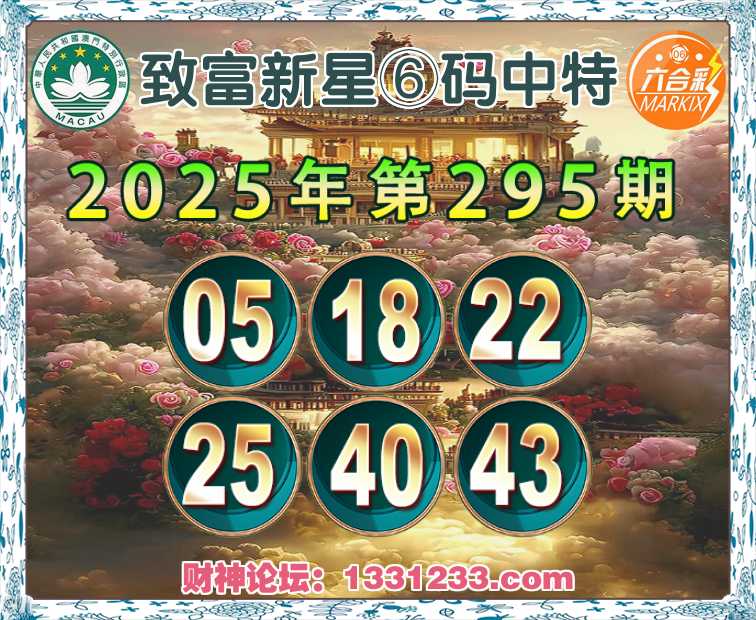 295期:【致富新星】 ⚽⑥码中特⚽【05.18.22.25.40.43】开:05准