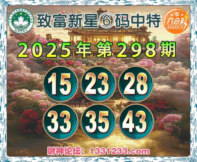 298期:【致富新星】 ⚽⑥码中特⚽【15.23.28.33.35.43】开:23准