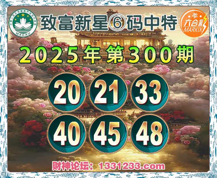 300期:【致富新星】 ⚽⑥码中特⚽【20.21.33.40.45.48】开:40准