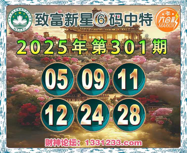 301期:【致富新星】 ⚽⑥码中特⚽【05.09.11.12.24.28】开:05准