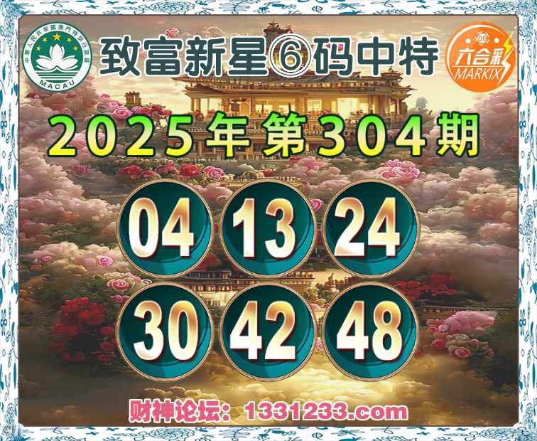 304期:【致富新星】 ⚽⑥码中特⚽【04.13.24.30.42.48】开:48准