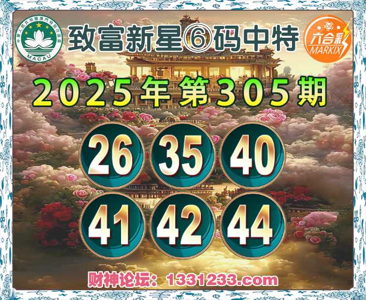 305期:【致富新星】 ⚽⑥码中特⚽【26.35.40.41.42.44】开:42准