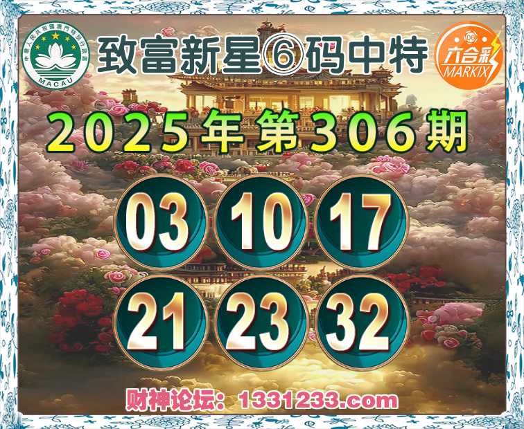 306期:【致富新星】 ⚽⑥码中特⚽【03.10.17.21.23.32】开:17准