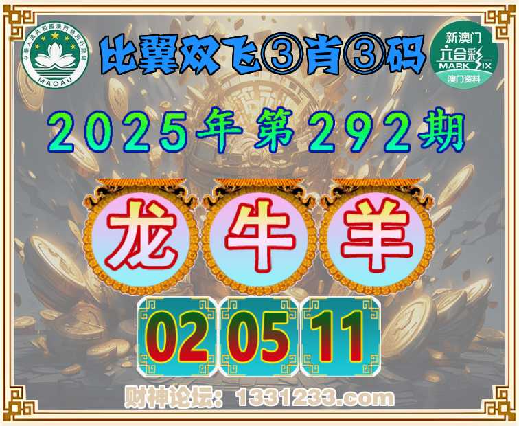292期:【比翼双飞】 🚲③肖③码🚲【龙牛羊】【02.05.11】开:龙02准