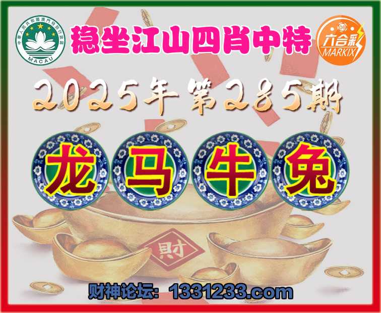 285期:【稳坐江山】 🩴四肖中特🩴【龙.马.牛.兔】开:马24准