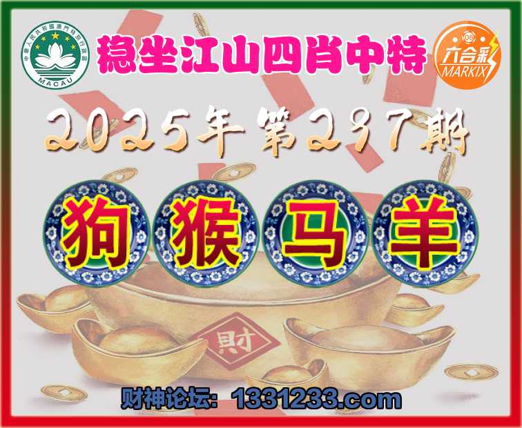 297期:【稳坐江山】 🩴四肖中特🩴【狗.猴.马.羊】开:狗44准
