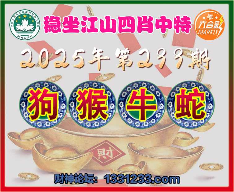 299期:【稳坐江山】 🩴四肖中特🩴【狗.猴.牛.蛇】开:蛇49准