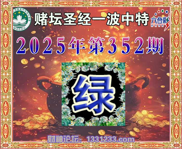 352期:《赌坛圣经》 🏅一波中特🏅【绿】开:绿44