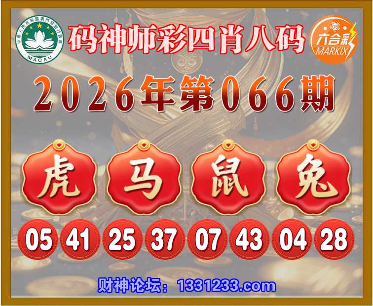 066期:〖码神师彩〗 🍏四肖八码🍏【虎马鼠兔】开:马37准