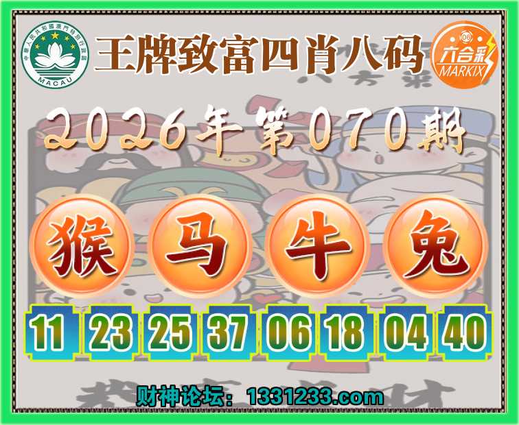 070期:『王牌致富』 🥖四肖八码🥖【猴马牛兔】开:马25准