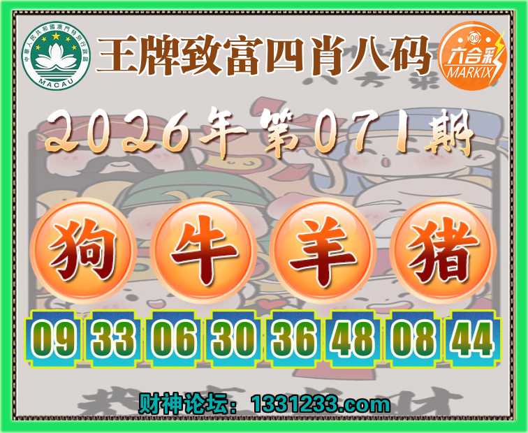 071期:『王牌致富』 🥖四肖八码🥖【狗牛羊猪】开:羊48准