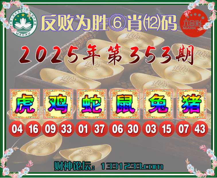 353期:『反败为胜』⑥肖⑿码⌚【虎鸡鼠兔猪】开:蛇01